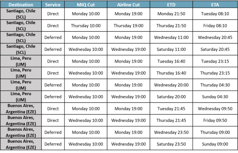 上面的是從休斯敦到拉丁美洲的航空貨運合并時間表
